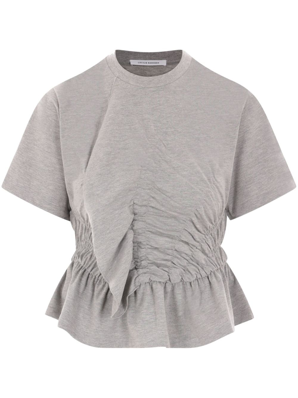 ruched T-shirt Highlights - Heather grey - Crew neck - Short sleeves - Peplum waist - Ruched detailing Imported Composition Cotton 100%
