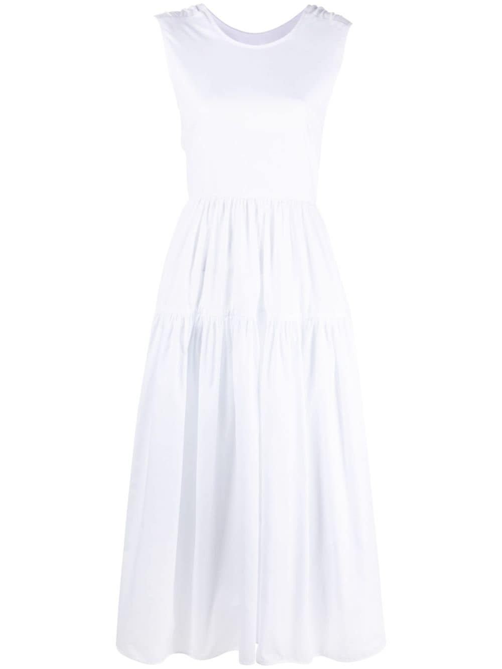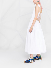Ruth tiered open-back dress Cecilie Bahnsen's revisit some of their signature pieces for their EDITION collection, a dive into the archives of past designs. The Ruth dress is a quintessential piece of the Danish label, imbued with a femininity that is simple and versatile for everyday wear. With unmistakably romantic influences, the dress has a fitted bodice that flows into a tiered skirt, while the open-back is accented with delicate tie details. Imported Composition Cotton 100% SIZE & FIT Model measurements Height 5 ft 9 in(1.75 m) Bust/Chest 31.49 in(80 cm) Hips 34.64 in(88 cm) Waist 24.01 in(61 cm) Measurement LENGTH 29.72 in(75.5 cm) WAIST 33.85 in(86 cm) FittingInformation This piece fits true to size. We recommend you get your regular size Designed for a close fit at the bust and waist, but loose at the hip Made with a mid-weight non-stretch fabric Washing instructions Hand Wash