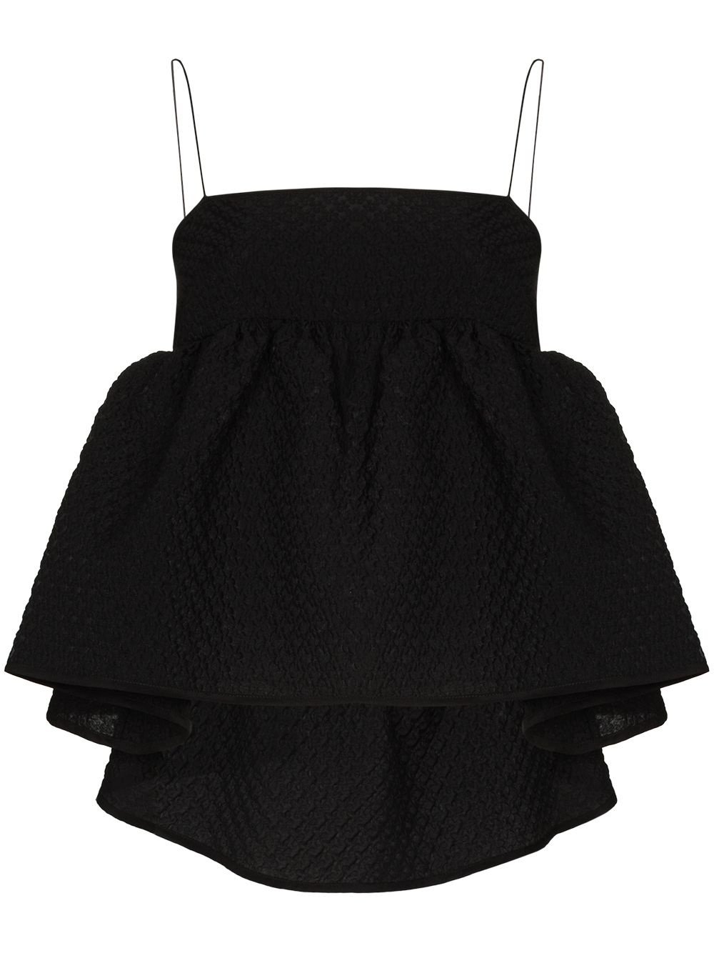Selena ruffled textured top Cecilie Bahnsen's AW21 collection offers some of the brand's signature motifs, like whimsical voluminous pieces and textured finishes, with a new approach to garments and materials. Made from a blend of cotton, the Selena top seamlessly blends the delicate look of spaghetti straps with the eye-catching volume of its flared hem. Imported Composition Cotton 68%, Polyester 23%, Polyamide 9% SIZE & FIT Model measurements Height 5 ft 11 in(1.8 m) Bust/Chest 31.49 in(80 cm) Hips 36.22 in(92 cm) Waist 25.59 in(65 cm) Measurement BUST 35.82 in(91 cm) FittingInformation This piece fits true to size. We recommend you get your regular size Designed for a close fit at the bust and waist, but loose at the hip Made with a mid-weight non-stretch fabric