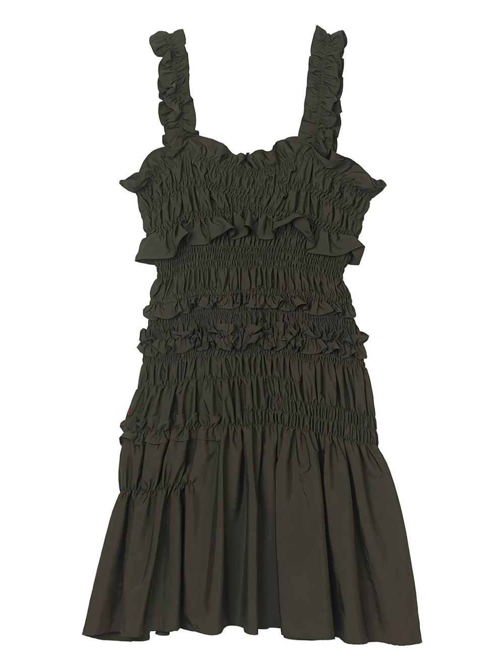 smocked ruffled dress Highlights - Dark green - Smocked bodice - Ruffled straps - Tiered skirt Imported Composition Polyamide 100% Washing instructions Hand Wash