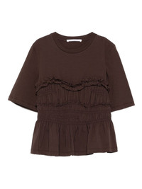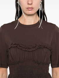 Vilde ruffled shirred cotton-jersey T-shirt Brown