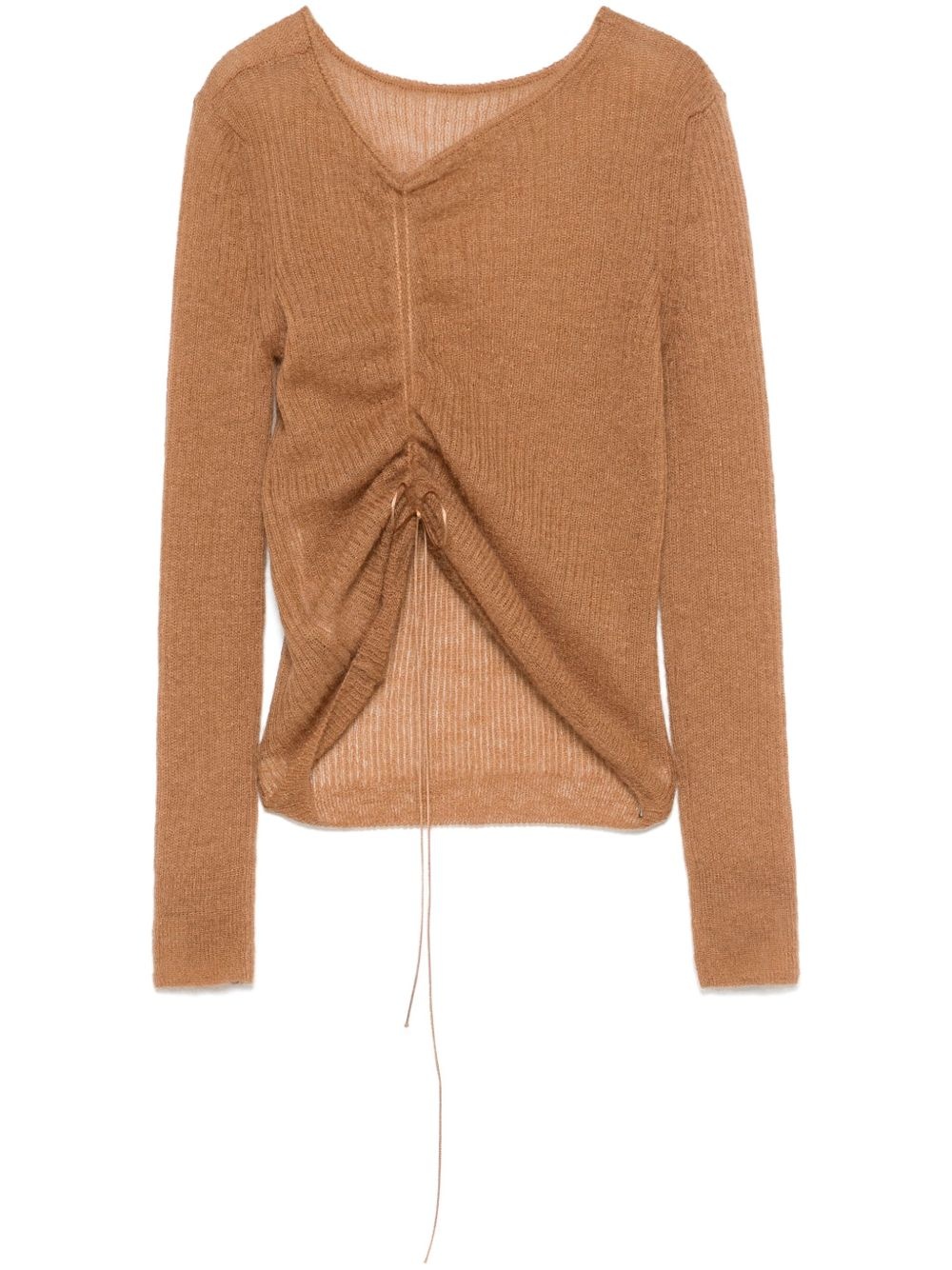 Ussi sweater Highlights - Chestnut brown - Ruched detailing - Crew neck - Long sleeves Imported Composition Mohair 50%, Polyamide 45%, Wool 5% SIZE & FIT Model measurements Height 5 ft 11 in(1.8 m) Bust/Chest 32.67 in(83 cm) Hips 36.22 in(92 cm) Waist 24.4 in(62 cm) FittingInformation Designed for a slim fit that sits just away from the body offering a close yet comfortable fit Made with a lightweight knit, this piece offers some stretch
