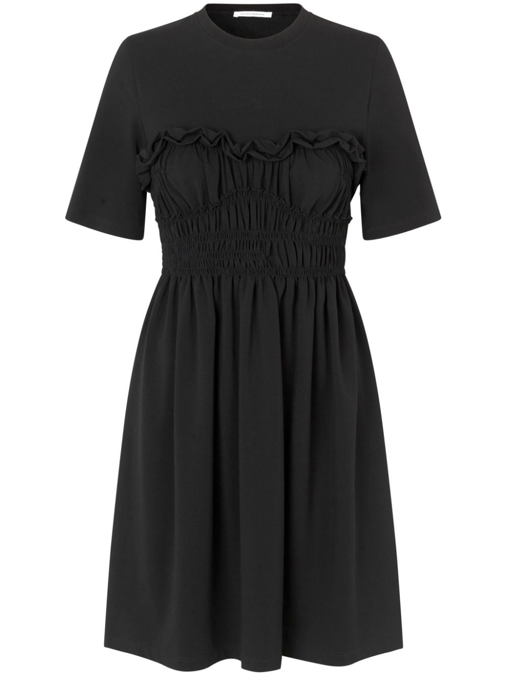 Valencia smocked jersey dress Highlights - Black - Cotton - Jersey texture - Smocking details - Crew neck - Short sleeves - Fully ruffled - Straight hem Imported Composition Cotton 100%