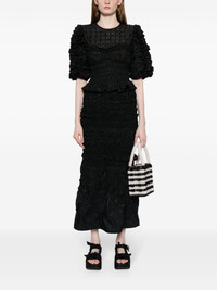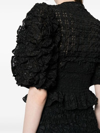 Vanessa puff-sleeve top Highlights - Black - Smocking details - Ruffled detailing - Round neck - Short puff sleeves - Peplum hem Imported Composition Polyester 85%, Polyamide 15% SIZE & FIT Model measurements Height 5 ft 9 in(1.75 m) Bust/Chest 31.88 in(81 cm) Hips 35.03 in(89 cm) Waist 23.22 in(59 cm) FittingInformation Designed for a slim fit that sits just away from the body offering a close yet comfortable fit The elasticated waist allows for a comfortable fit Made from a midweight non-stretch fabric This piece fits true to size – take your usual size Washing instructions Dry Clean Only