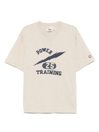 slogan-print T-shirt Highlights - Light beige - Embroidered logo at the sleeve - Crew neck - Short sleeves Imported Composition Cotton 80%, Linen/Flax 20% SIZE & FIT FittingInformation Designed to be unstructured, offering a loose fit throughout Made from a midweight non-stretch fabric, this piece offers minimal elasticity when worn