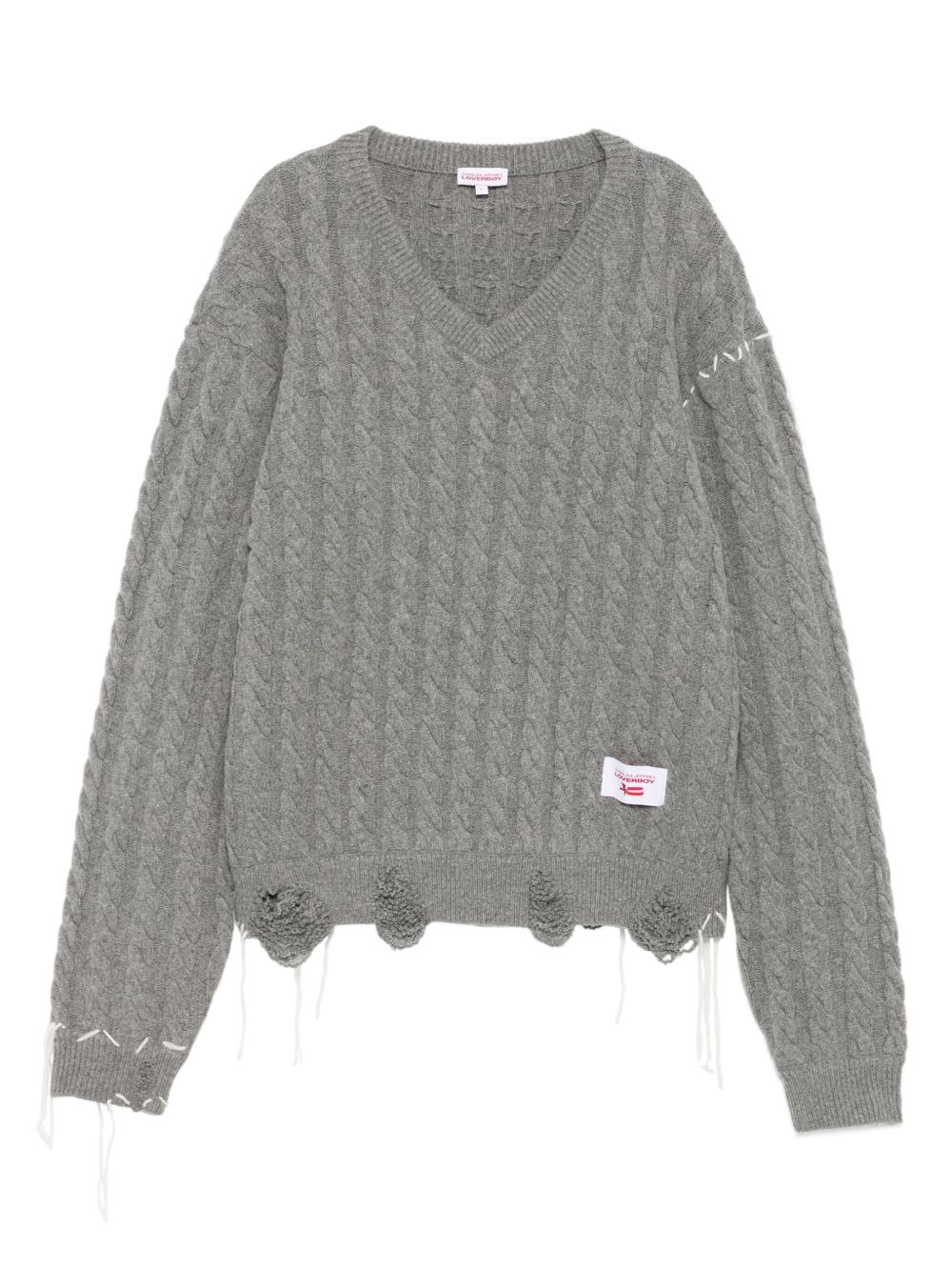 cable-knit V-neck sweater Highlights - Grey - Rws lambswool-blend - Cable knit - V-neck - Frayed trims - Label applique Imported Composition RWS Wool 80%, Recycled Nylon 20% Washing instructions Read Manufacturer Guidelines