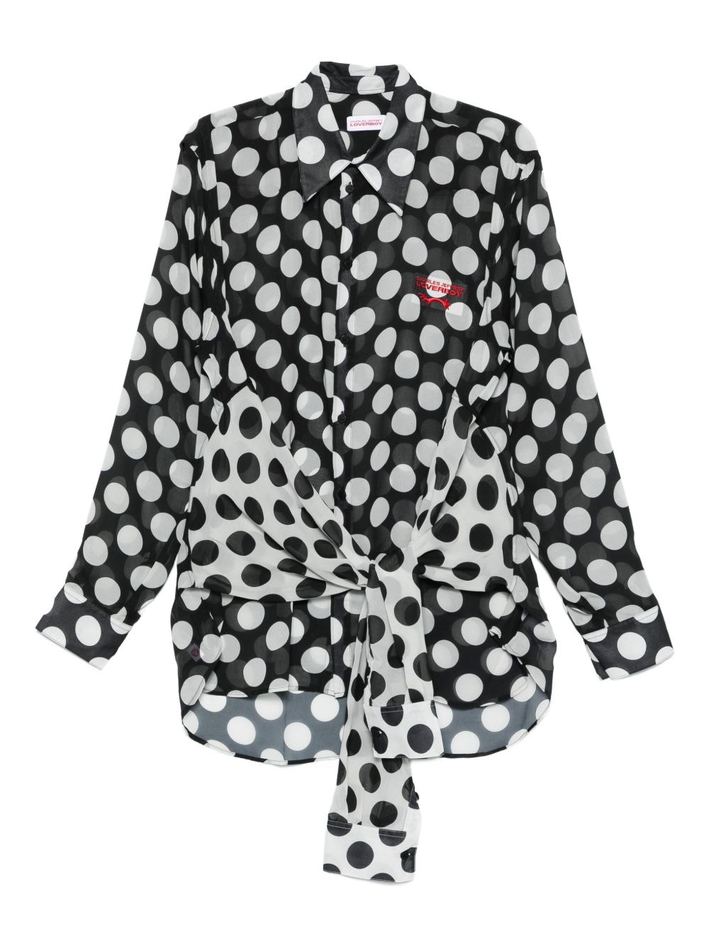 Hug shirt Highlights - Black - Polka dot print - Concealed front button fastening Imported Composition Polyester 100% SIZE & FIT Model measurements Height 5 ft 9 in(1.75 m) Bust/Chest 32.67 in(83 cm) Hips 36.22 in(92 cm) Waist 24.8 in(63 cm) Washing instructions Dry Clean Only