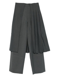 pleated wide-leg trousers Highlights - Grey - Pleat detailing - Wide leg - Side buckle fastening - A-line skirt design Imported Composition Polyester 64%, Viscose 34%, Elastane 2% Washing instructions Read Manufacturer Guidelines