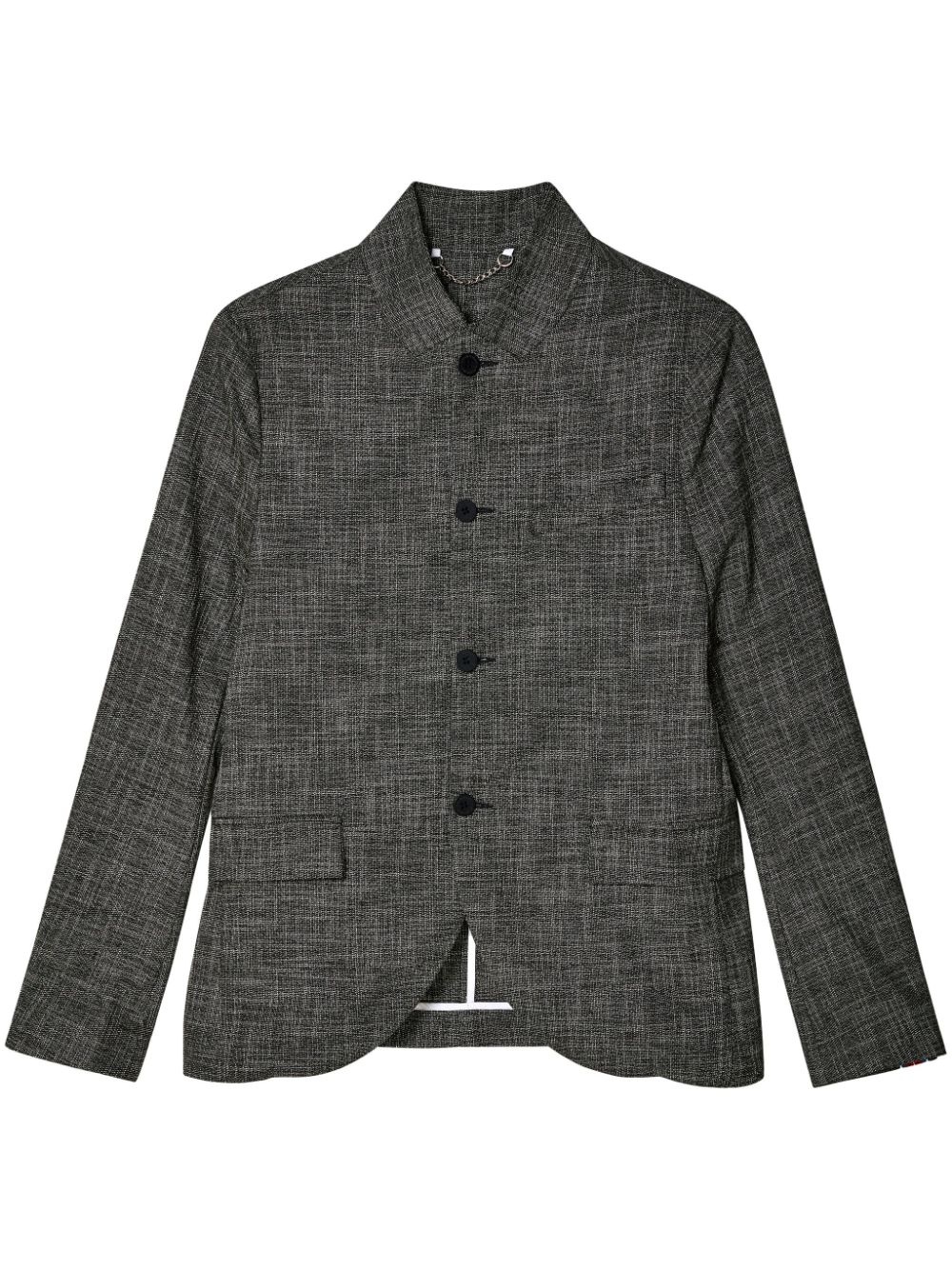 single-breasted tweed blazer Highlights - Cool grey - Wool blend - Tweed - Logo print to the rear - Classic lapels - Front button fastening - Long sleeves - Buttoned cuffs - Two side flap pockets - Straight hem Imported Composition Body: Recycled Polyester 54%, Wool 44%