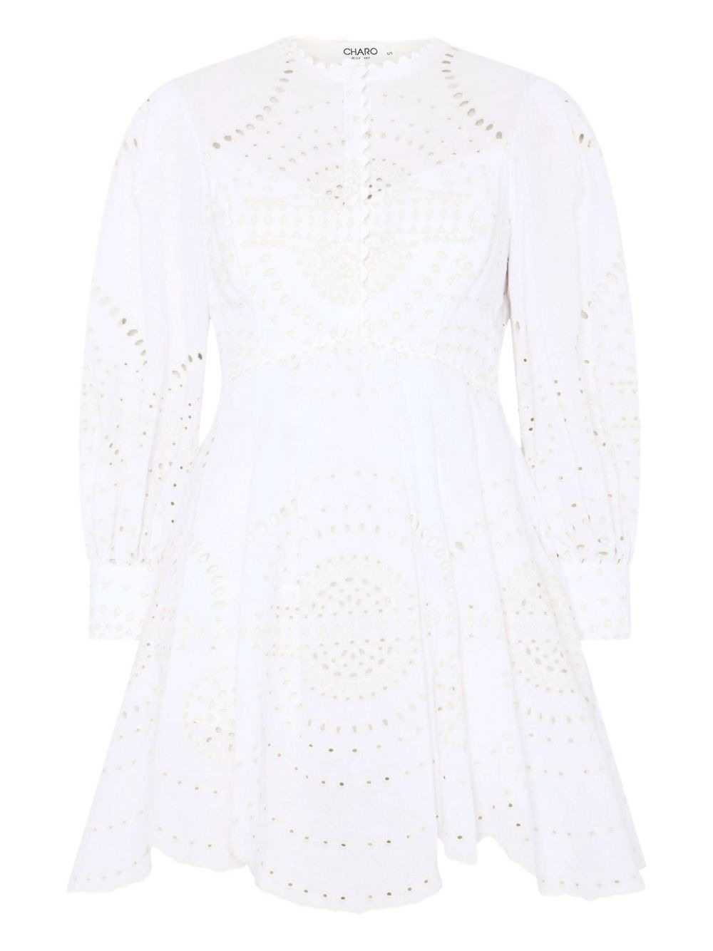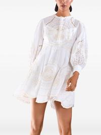 Ashai mini dress Highlights - Ivory white - Bishop sleeves - Pleated skirt - Broderie anglaise - Scallop edge Imported Composition Cotton 60%, Polyester 20%, Linen/Flax 20% SIZE & FIT FittingInformation Designed for a close fit at the chest and waist with a loose fit at the hip The internal slip sits just away from the body, offering a close yet comfortable fit Made from a midweight non-stretch fabric Washing instructions Read Manufacturer Guidelines