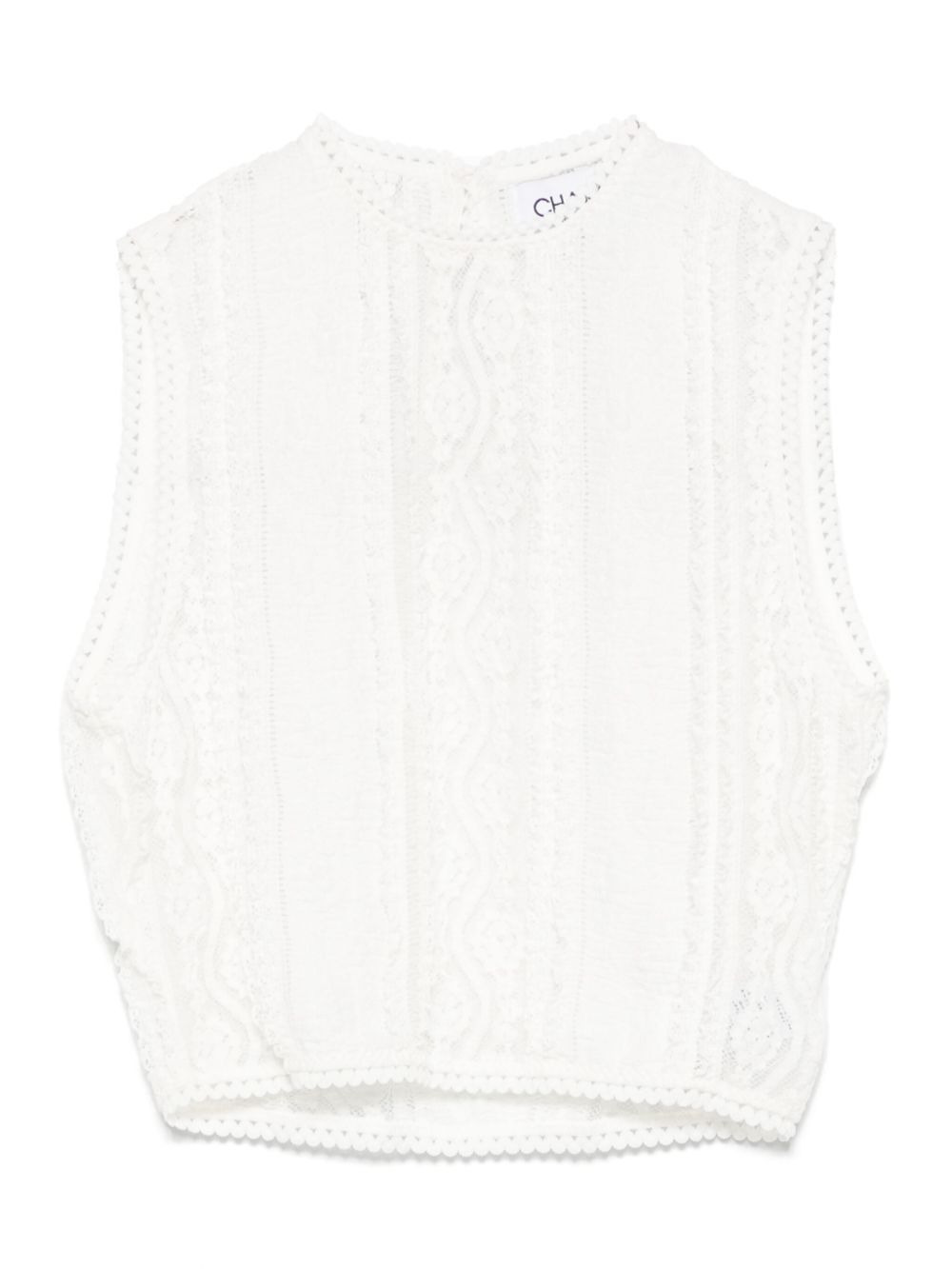 Asteria top Highlights - White - Crew neck - Sleeveless - Scallop hem Imported Composition Cotton 50%, Nylon 47%, Elastane 3% SIZE & FIT Model measurements Height 5 ft 11 in(1.8 m) Bust/Chest 32.67 in(83 cm) Hips 35.82 in(91 cm) Waist 25.98 in(66 cm) FittingInformation Designed for a close fit throughout Cropped in length Made from a lightweight stretch fabric, this piece offers elasticity and flexibility when worn Washing instructions Hand Wash