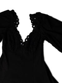 Corbin sweetheart-neck midi dress Highlights - Black - Scalloped trim - Puff sleeves - Eyelet detail - V-neck - Flared hem Imported Composition Cotton 70%, Polyester 30% Washing instructions Read Manufacturer Guidelines