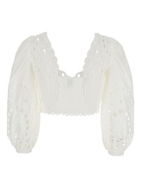 eyelet detail crop blouse Highlights - White - Eyelet detail - Square neck - Smocked panel - Puffed sleeves - Crop style Imported Composition Cotton 90%, Polyester 10% Washing instructions Read Manufacturer Guidelines
