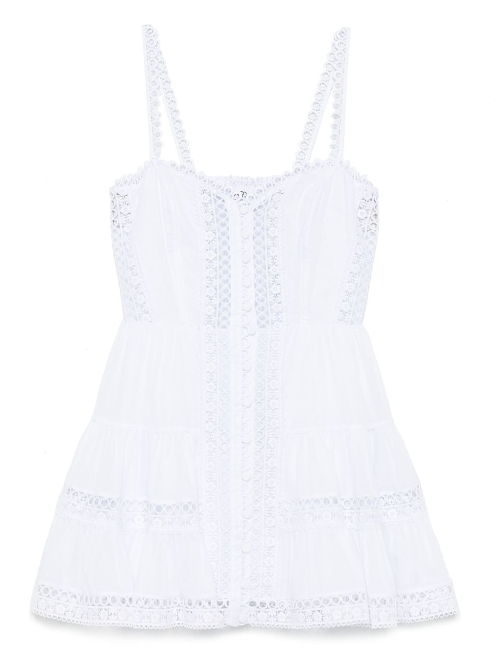 Lenora tiered guipure lace-trimmed cotton-blend voile mini dress White