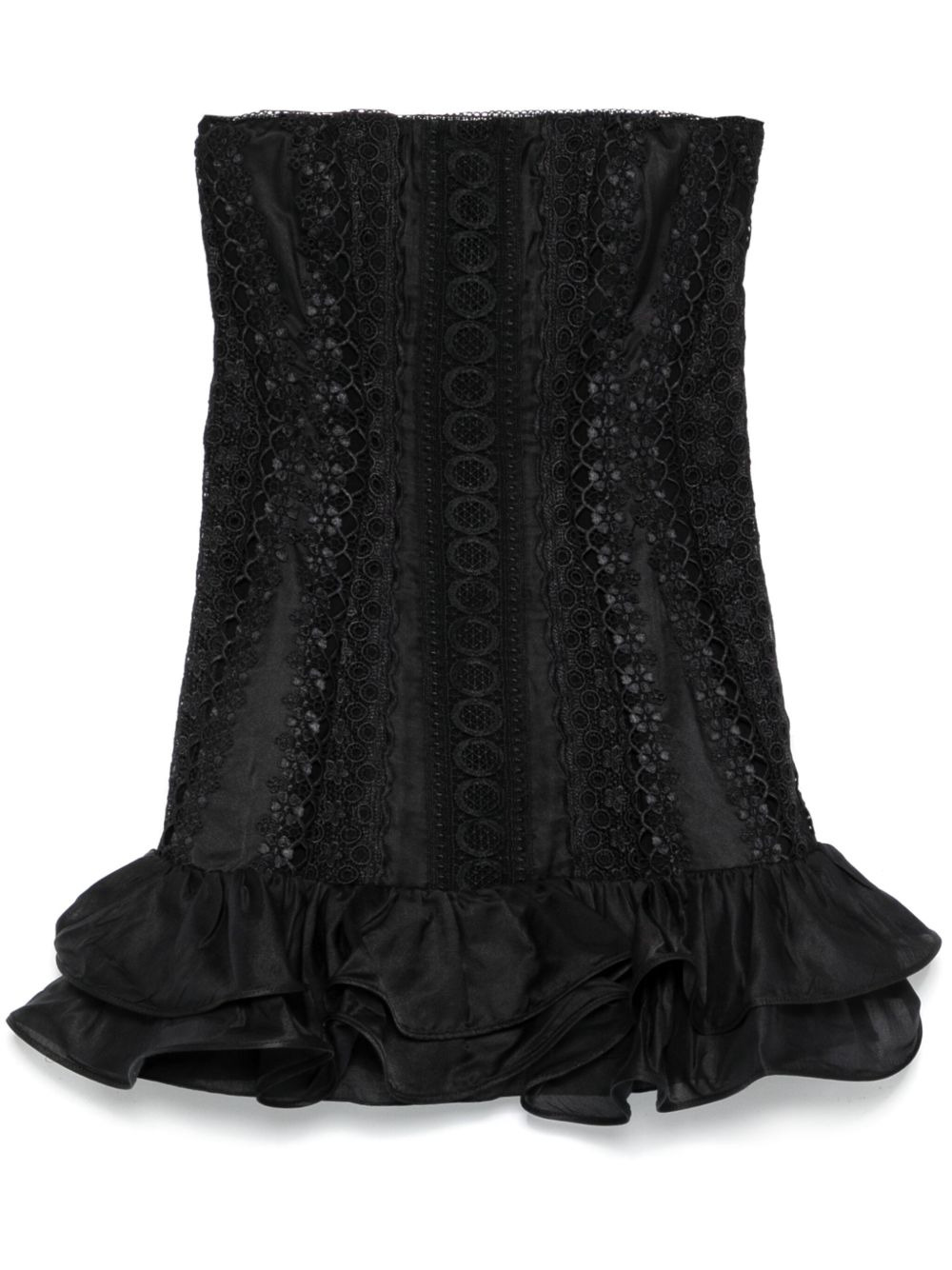 Pralle mini dress Highlights - Black - Concealed side hook and zip fastening - Shirred panel - Grip tape top - Ruffle hem Imported Composition Cotton 40%, Polyester 30%, Silk 20%, Nylon 7%, Spandex/Elastane 3% SIZE & FIT Model measurements Height 5 ft 11 in(1.8 m) Bust/Chest 33.07 in(84 cm) Hips 37.4 in(95 cm) Waist 25.19 in(64 cm) FittingInformation Designed for a close fit throughout Made from a midweight fabric Washing instructions Hand Wash