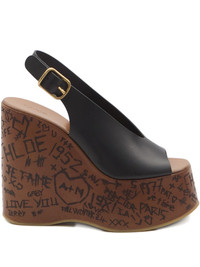 Maxime leather slingback platform wedge sandals Black