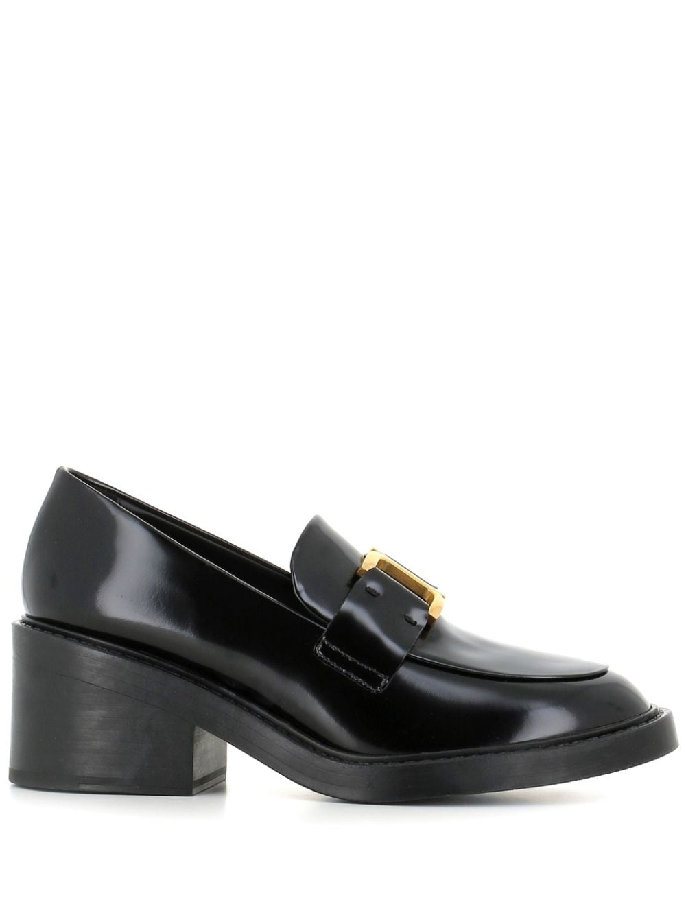 60mm buckled leather loafers Highlights - Black - Calf leather - Logo-buckle detail - Almond toe - Slip-on style - 60mm mid block heel Made in Italy Composition Leather 100% SIZE & FIT Measurement HEEL 2.36 in(6 cm)