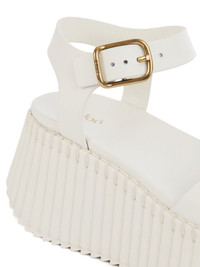 80mm buckle-fastening platform sandals Highlights - White - Pleated platform sole - Ankle strap - Buckle fastening - Single strap - Leather upper Imported Composition Sole: Rubber 50%, Polyethylene vinyl acetate (PEVA) 50% Lining: Calf Leather 100% Outer: Calf Leather 100% SIZE & FIT Measurement HEEL 3.14 in(8 cm)
