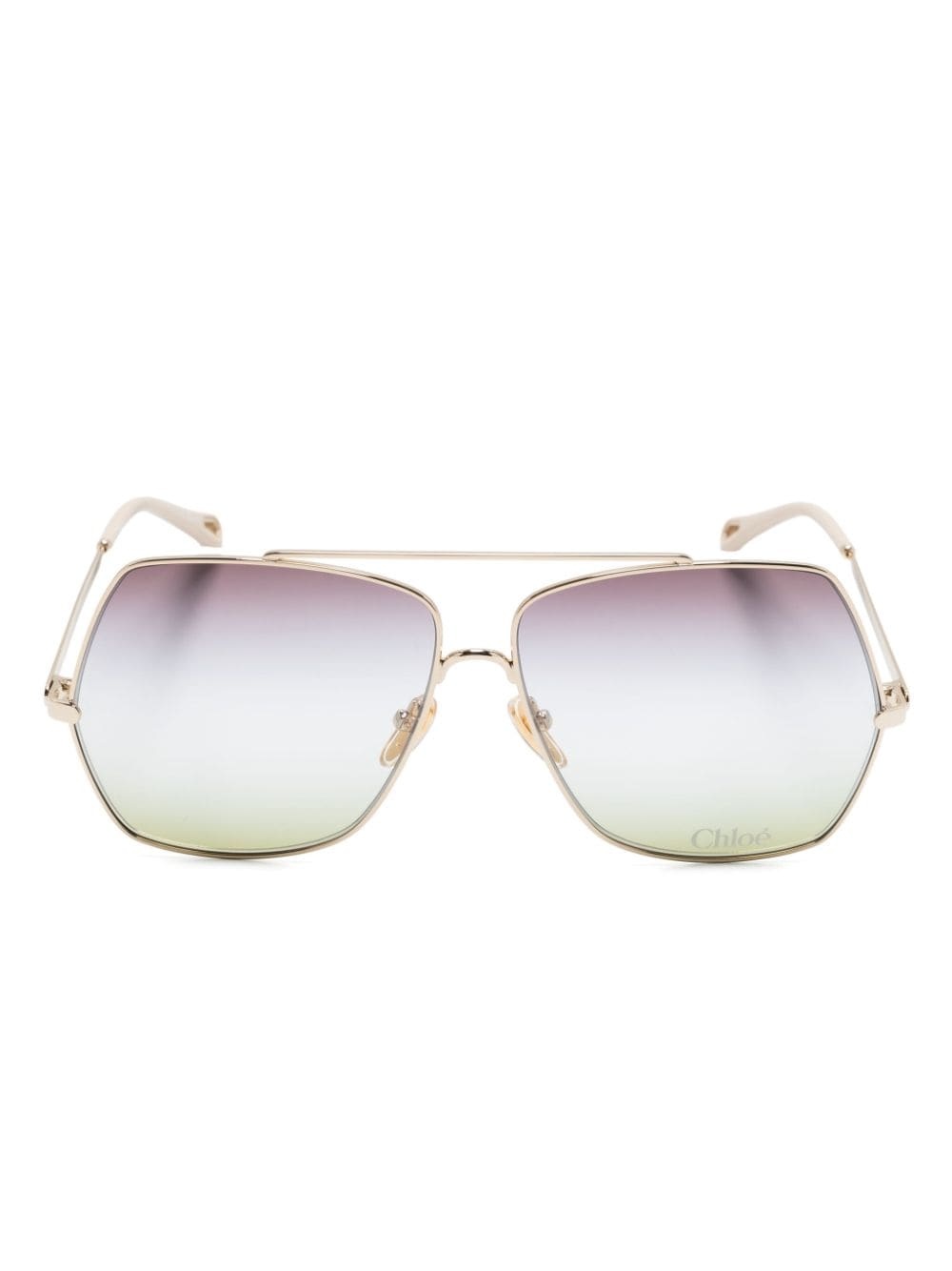 Aly sunglasses Highlights - Gold/beige - Metal - Acetate - Polished finish - Geometric frame - Gradient lenses - Logo-engraved arm - Curved arms - These glasses come with a protective case. Made in Italy Composition Metal 100%, Acetate 100% SIZE & FIT Measurement Arm Length 5.51 in(14 cm) Bridge Width 0.47 in(1.2 cm) Lens Diameter 2.44 in(6.2 cm) Total Width 5.9 in(15 cm)
