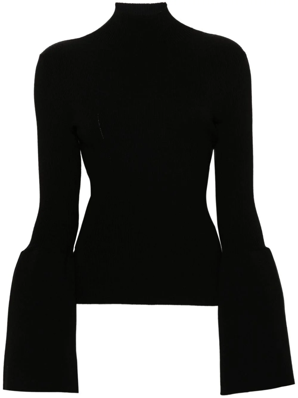 bell-sleeves ribbed jumper Highlights - Black - Wool blend - Ribbed knit - Funnel neck - Bell sleeves - Straight hem - Unlined Made in Italy Composition Wool 78%, Paper Yarn 18%, Polyurethane 4% Washing instructions Dry Clean Only