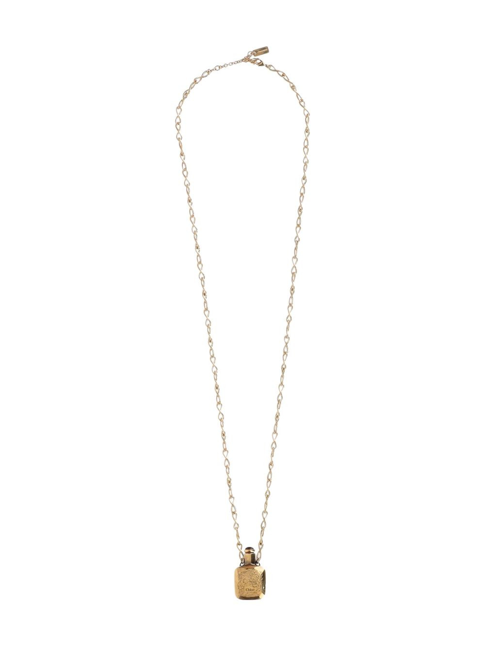 bottle-pendant necklace Highlights - Gold-tone - Square perfume-bottle pendant - Engraved detailing - Lobster-claw fastening Imported