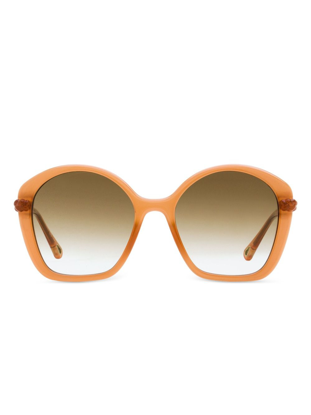 braided-detail oversized sunglasses Highlights - Amber - Gradient lenses - Large frame - Braided temples - Rounded corners - Logo detailing - These glasses come with a protective case. Made in Italy Composition Acetate 100% SIZE & FIT Measurement Arm Length 5.7 in(14.5 cm) Bridge Width 0.78 in(2 cm) Lens Diameter 2.16 in(5.5 cm) Total Width 5.82 in(14.8 cm)