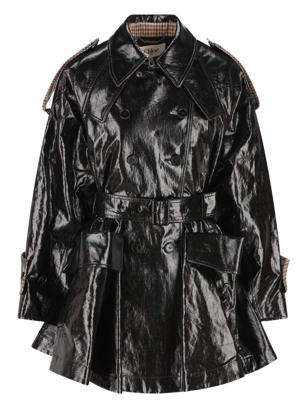 DOUBLE-BREASTED SHORT RIDING COAT IN COATED LINEN