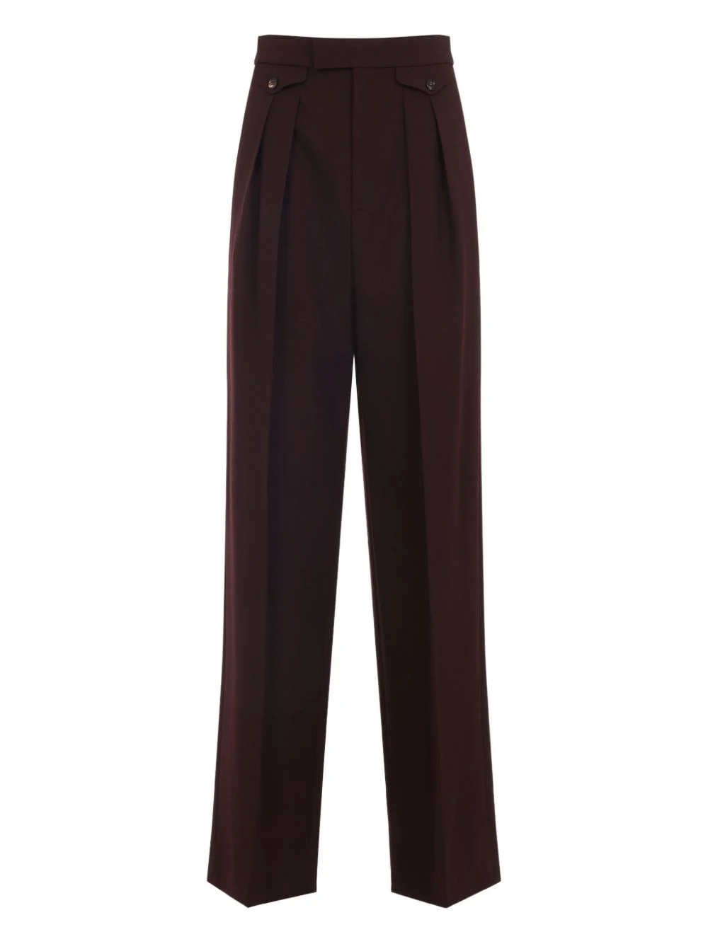 buttoned pleated trousers Highlights - Deep purple - Pleated - Buttoned flap pockets - Button fastening - Belt loops - Wool Made in Italy Composition Wool 100% Washing instructions Read Manufacturer Guidelines