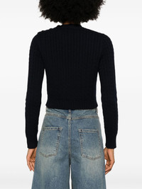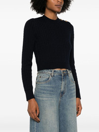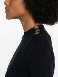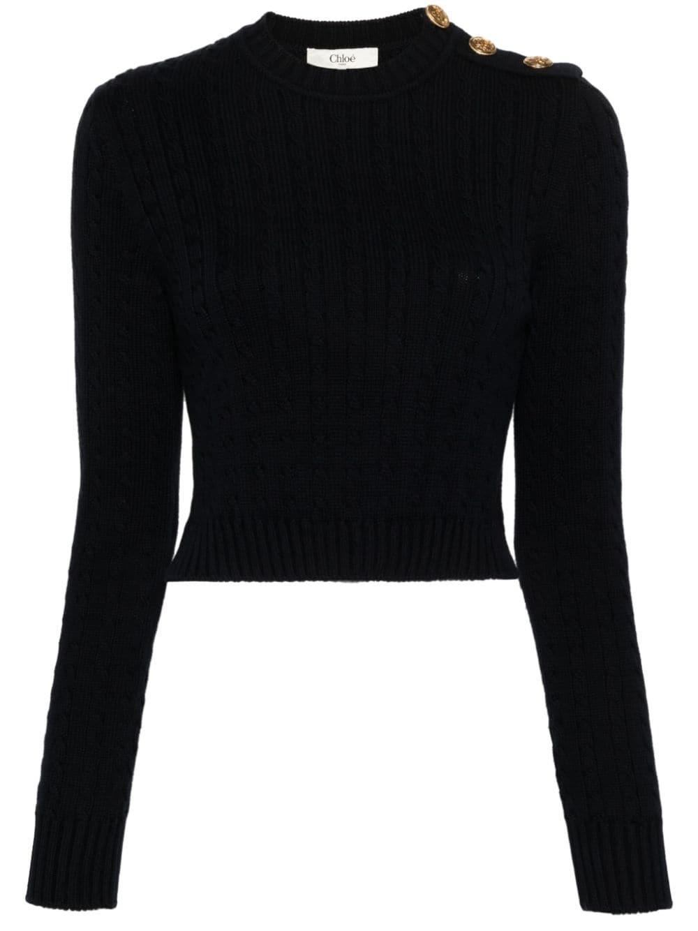 cable-knit cropped jumper Highlights - Navy blue - Cotton - Cable knit - Embossed gold-tone buttons - Crew neck - Button fastening at the shoulder - Long sleeves - Ribbed cuffs and hem - Cropped straight hem Made in Italy Composition Lining: Cotton 100% Outer: Cotton 100% SIZE & FIT Model measurements Height 5 ft 11 in(1.8 m) Bust/Chest 32.67 in(83 cm) Hips 35.82 in(91 cm) Waist 25.98 in(66 cm) FittingInformation Designed for a slim fit that sits just away from the body offering a close yet comfortable fit The ribbed hem offers a close, comfortable fit Made with a midweight knit, this piece offers some stretch This piece fits true to size – take your usual size