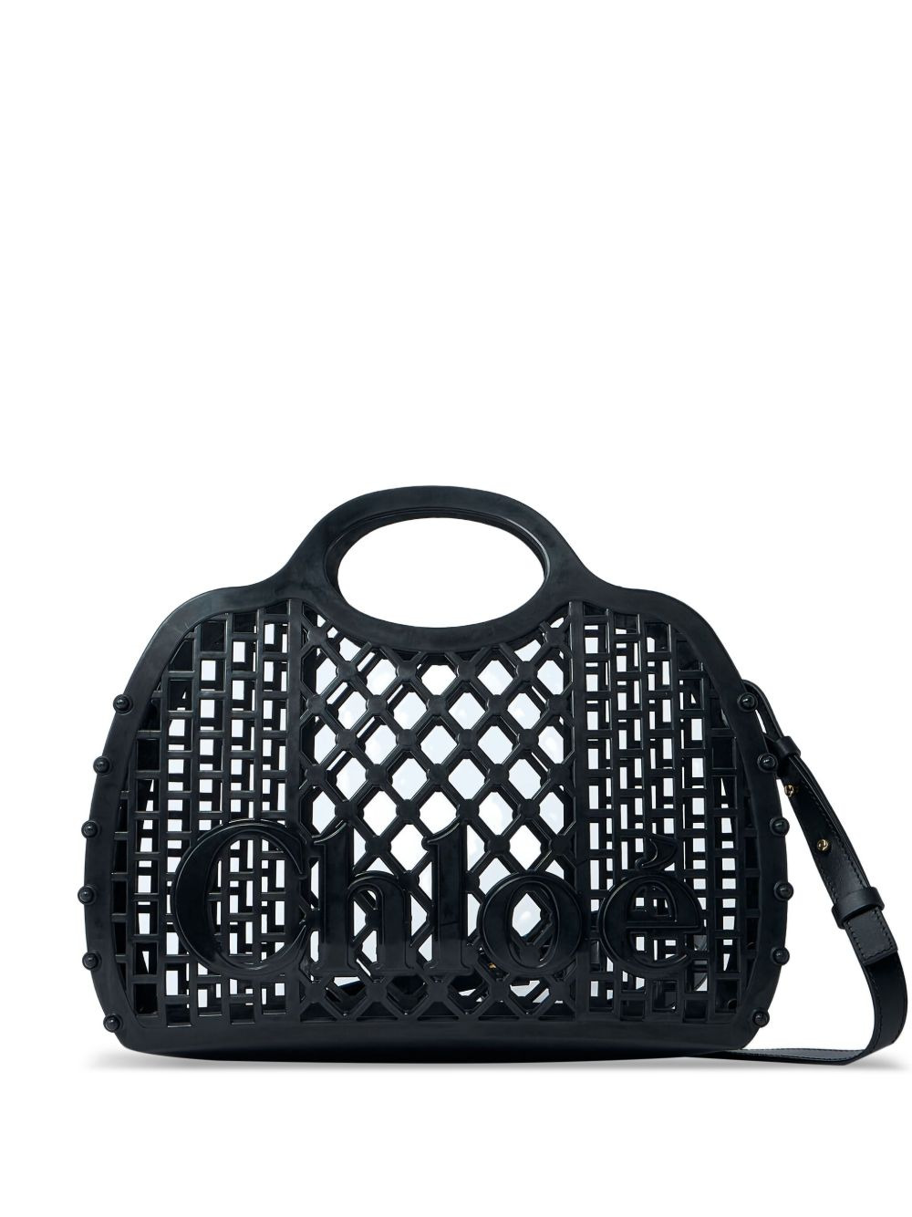 Cage logo-detail tote bag Highlights - Black - Lattice pattern - Top handles - Detachable strap - Logo detail Made in Italy Composition Fabric 100% SIZE & FIT Measurement DEPTH 4.72 in(12 cm) HEIGHT 7.48 in(19 cm) WIDTH 12.2 in(31 cm)