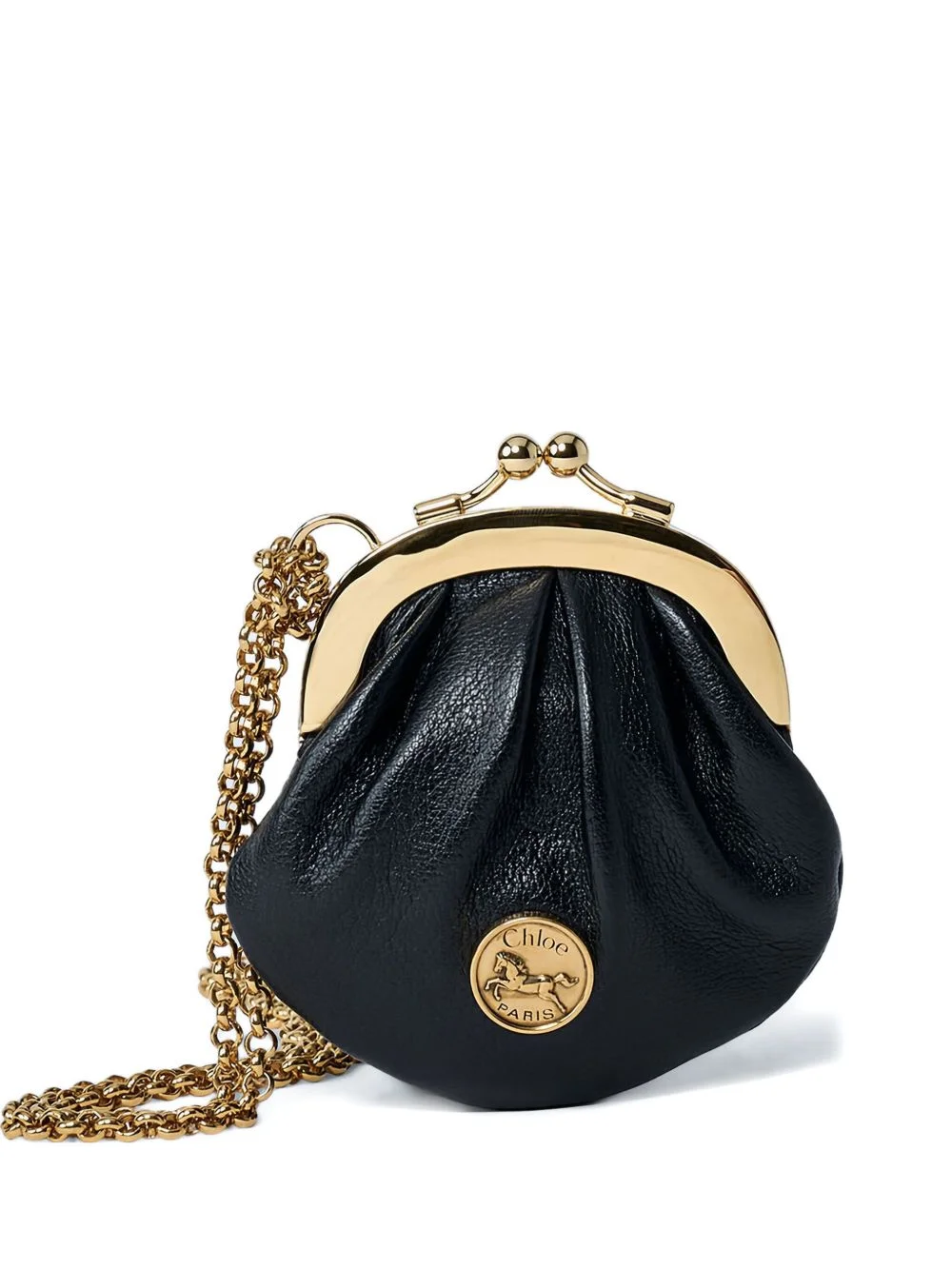 MICRO HORSE MEDAL COIN PURSE NECKLACE IN GRAINED LEATHER