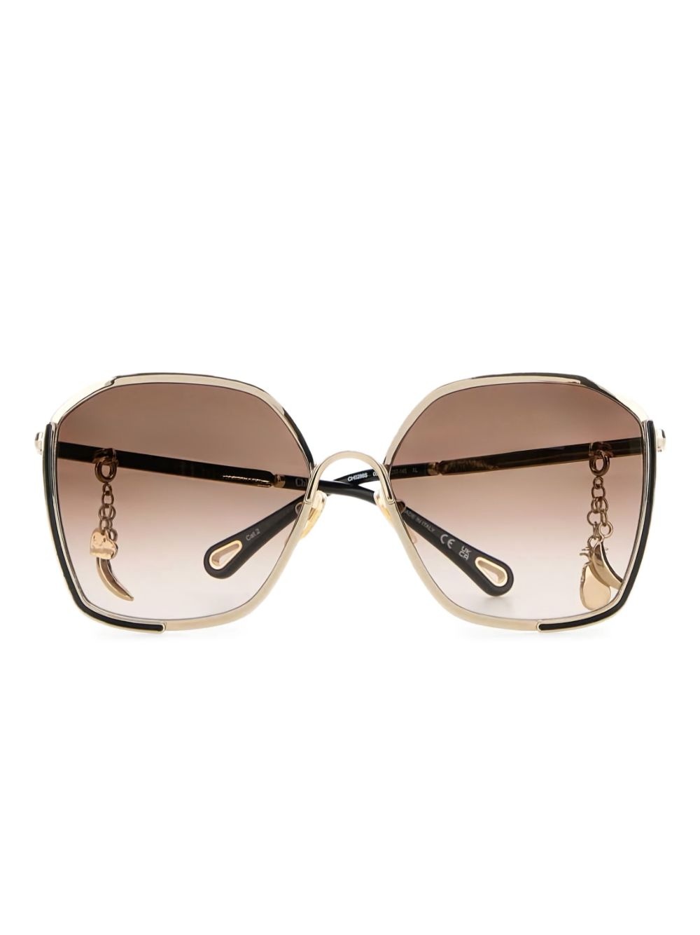 Charms sunglasses Highlights - Brown gradient - Octagonal shape - Gold-tone metal frame - Decorative charm detailing - Tinted lenses - Slim side arms - Logo embellishment - These glasses come with a protective case. Imported Composition Enamel 100%, Metal 100%, Nylon 100% SIZE & FIT Measurement Arm Length 5.7 in(14.5 cm) Bridge Width 0.66 in(1.7 cm) Lens Diameter 2.36 in(6 cm)