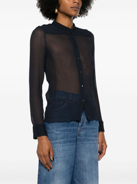 chiffon-crepe silk shirt Highlights - Navy blue - Silk - Chiffon crepe - Plisse effect - Semi-sheer construction - Band collar - Long sleeves with buttoned cuffs - Straight hem - Front button placket Made in France Composition Silk 100% SIZE & FIT Model measurements Height 5 ft 11 in(1.8 m) Bust/Chest 32.67 in(83 cm) Hips 35.82 in(91 cm) Waist 25.98 in(66 cm) FittingInformation Designed for a slim fit that sits just away from the body offering a close yet comfortable fit Made from a lightweight non-stretch fabric This piece fits true to size – take your usual size