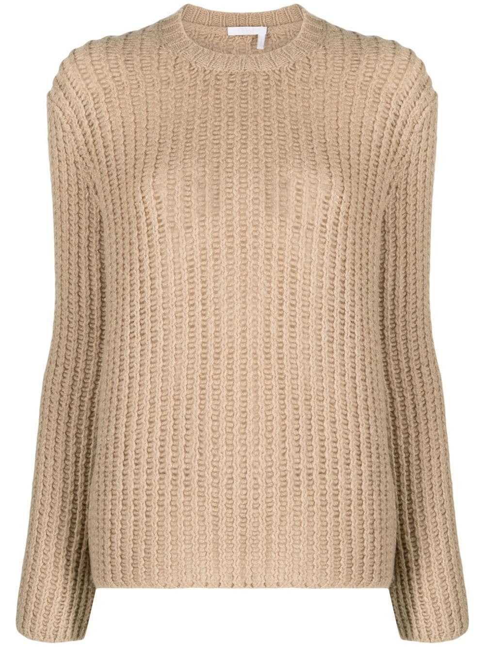 crew-neck waffle-knit jumper Designed by French brand Chloe, this crew neck jumper is defined by its knitted design. Crafted from wool, silk and cashmere blend, it is realised in a chunky waffle-knit construction. Made in Italy Composition Wool 86%, Silk 9%, Cashmere 5% SIZE & FIT Model measurements Height 5 ft 10 in(1.77 m) Bust/Chest 32.67 in(83 cm) Hips 35.43 in(90 cm) Waist 23.62 in(60 cm) FittingInformation This piece fits true to size. We recommend you get your regular size Cut for a relaxed fit Made with a mid-weight fabric Measurement SLEEVE LENGTH 24.48 in(62.2 cm) LENGTH 25.98 in(66 cm) WAIST 35.98 in(91.4 cm) BUST 37.99 in(96.5 cm)