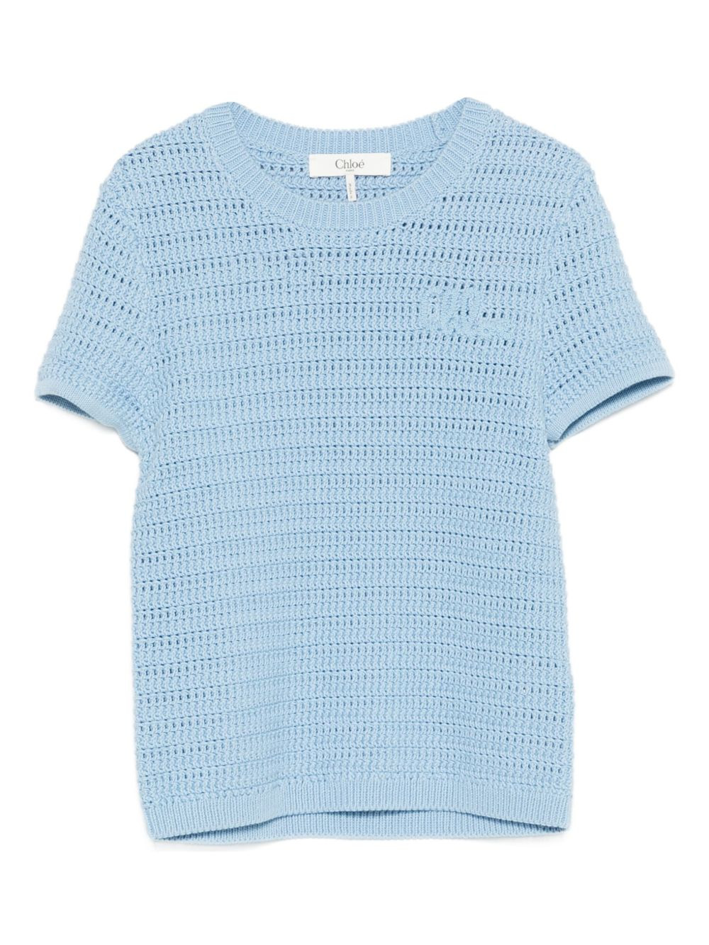 crochet-knit T-shirt Highlights - Blue - Round neck - Short sleeves Imported Composition Cotton 100% SIZE & FIT Model measurements Height 5 ft 8 in(1.73 m) Bust/Chest 29.92 in(76 cm) Hips 33.07 in(84 cm) Waist 23.22 in(59 cm) Washing instructions Read Manufacturer Guidelines