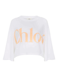 cropped cotton t-shirt Highlights - White - Crew neck - Logo print to the front - Half-length sleeves Imported Composition Cotton 100% Washing instructions Machine Wash