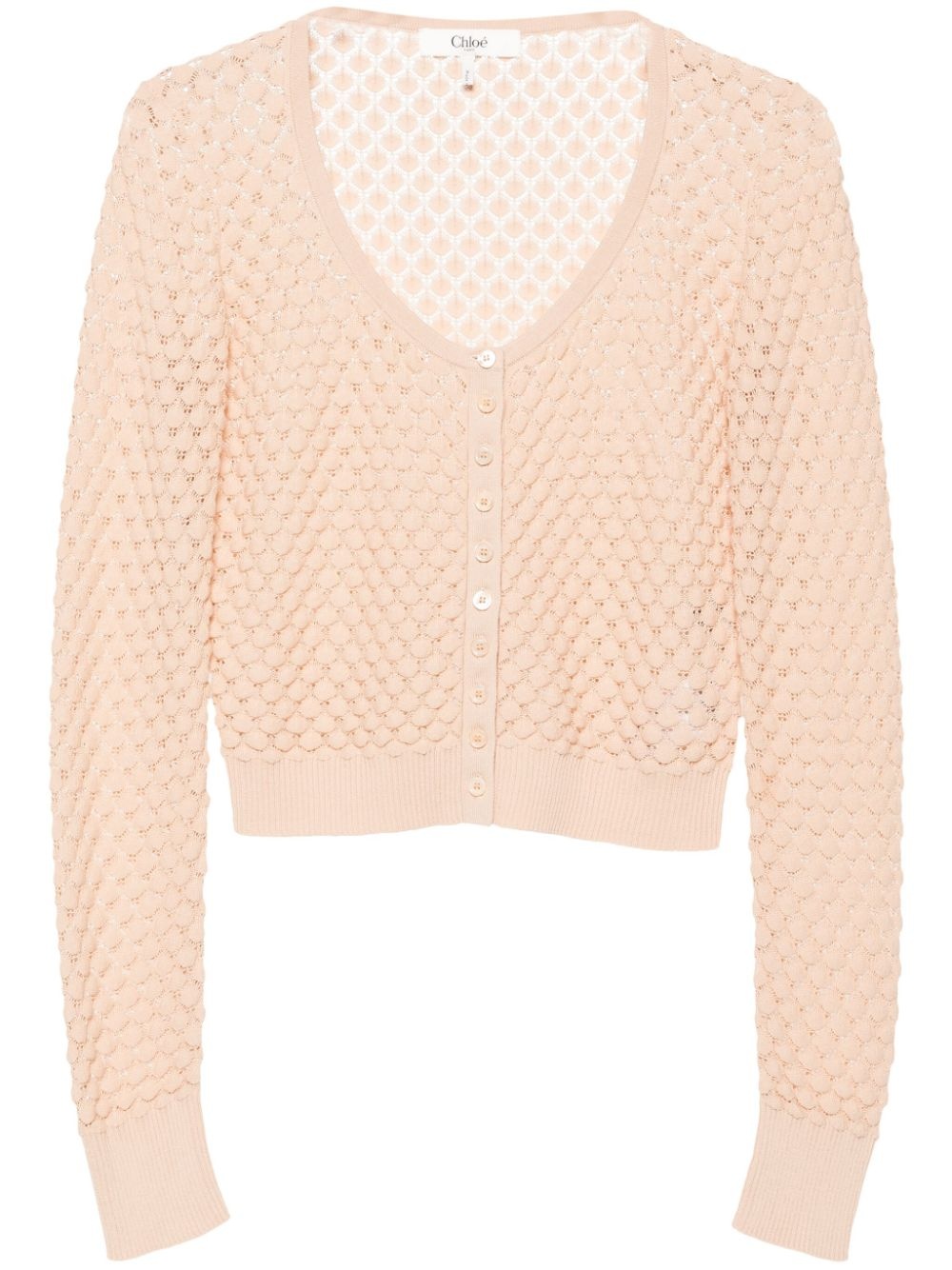 cropped pointelle-knit cardigan Highlights - Sand beige - Cotton - Pointelle knit - Crew neck - Front button fastening - Long sleeves - Ribbed cuffs and hem - Cropped Imported Composition Cotton 100% SIZE & FIT Model measurements Height 5 ft 10 in(1.77 m) Bust/Chest 33.85 in(86 cm) Hips 37 in(94 cm) Waist 26.37 in(67 cm) FittingInformation Designed for a slim fit that sits just away from the body offering a close yet comfortable fit Cropped in length Made with a lightweight knit, this piece offers some stretch This piece fits true to size – take your usual size