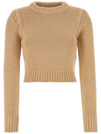 cropped sweater Highlights - Beige - Cotton-cashmere blend - Knitted construction - Cropped - Crew neck - Long sleeves - Ribbed-knit edge Made in Italy Composition Cotton 50%, Cashmere 50%