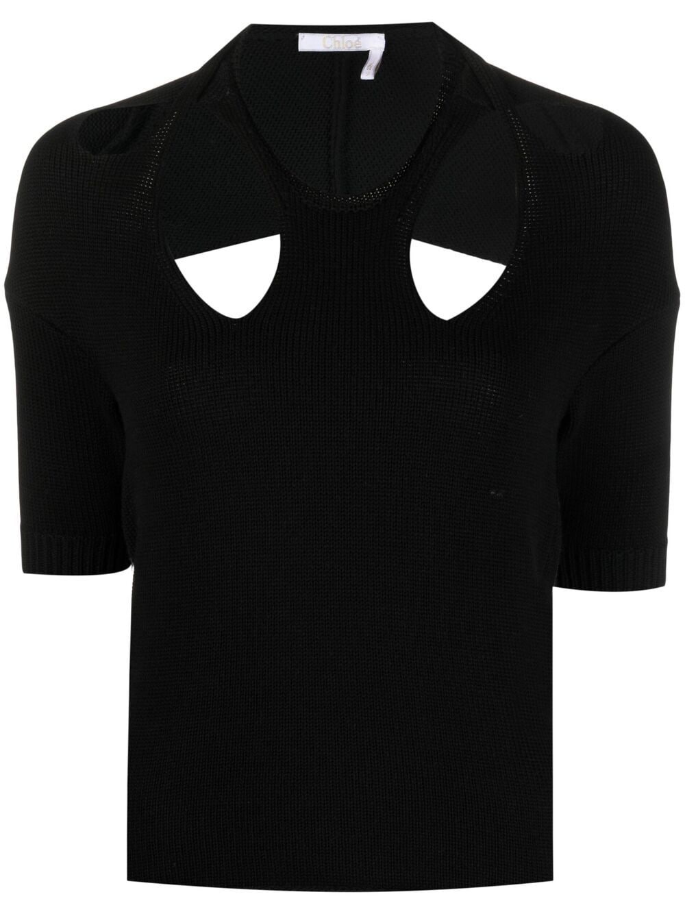 cut-out knitted top Chloe makes a case for strategic style with this cut-out knitted top. Made from a cotton-wool blend, this short-sleeve piece has been designed with carefully-placed cut-out shapes to the front and back. Simple, yet highly effective. Made in Italy Composition Cotton 72%, Wool 28% SIZE & FIT Model measurements Height 5 ft 10 in(1.79 m) Bust/Chest 31.88 in(81 cm) Hips 35.43 in(90 cm) Waist 23.62 in(60 cm)