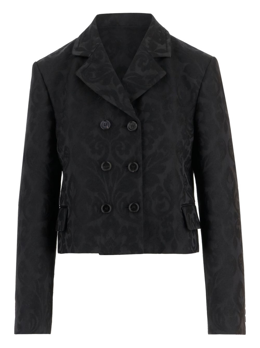 damask double-breasted jacket Highlights - Black - Damask pattern - Double-breasted closure - Notched lapels - Long sleeves - Side flap pockets Made in Italy Composition Wool 77%, Polyester 23% Washing instructions Read Manufacturer Guidelines