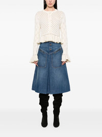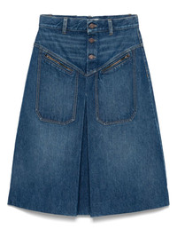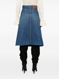 denim midi skirt Highlights - Indigo blue - Short front button fastening - Front zip fastening pockets - Belt loops - Logo patch to the rear Imported Composition Fabric 100% SIZE & FIT Model measurements Height 5 ft 10 in(1.78 m) Bust/Chest 33.46 in(85 cm) Hips 36.22 in(92 cm) Waist 23.22 in(59 cm) FittingInformation This midi-length skirt is intended to be worn high on the waist