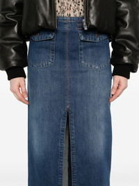 denim midi skirt Highlights - Blue - Cotton - Washed denim - Concealed rear zip fastening - High waist - Two side flap pockets - Front slit - Unlined - Straight hem - Mid-length Made in Italy Composition Outer: Cotton 100% Lining: Polyester 65%, Cotton 35% SIZE & FIT Model measurements Height 5 ft 9 in(1.75 m) Bust/Chest 34.64 in(88 cm) Hips 36.61 in(93 cm) Waist 26.37 in(67 cm) FittingInformation This midi-length skirt is intended to be worn just below the waist Sturdy and hard-wearing, this denim piece offers no stretch