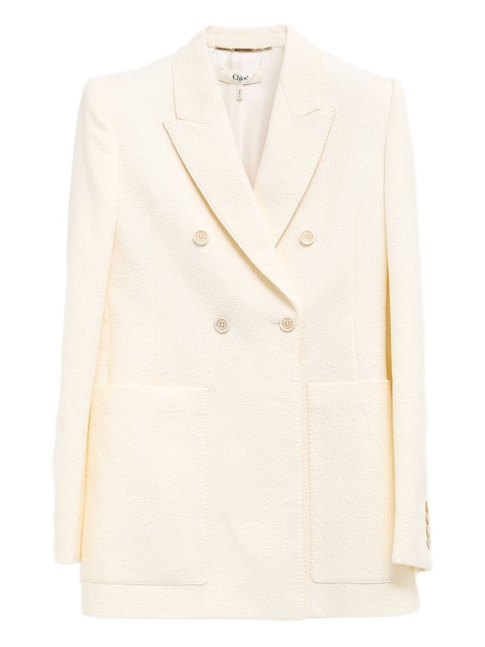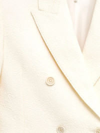 double-breasted blazer Highlights - Cream - Double-breasted front - Peaked lapels - Two front pockets - Single vent at the back - Button details Imported Composition Cotton 68%, Polyamide 32%