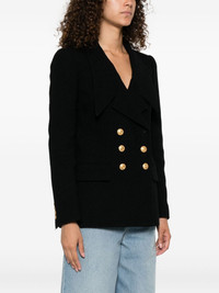 double-breasted blazer Highlights - Black - Double-breasted - Gold-tone buttons - Notched lapels - Front flap pockets Imported Composition Outer: Virgin Wool 89%, Polyamide 10%, Elastane 1% Lining: Silk 100% SIZE & FIT Model measurements Height 5 ft 10 in(1.79 m) Bust/Chest 31.88 in(81 cm) Hips 35.43 in(90 cm) Waist 23.62 in(60 cm) Washing instructions Dry Clean Only