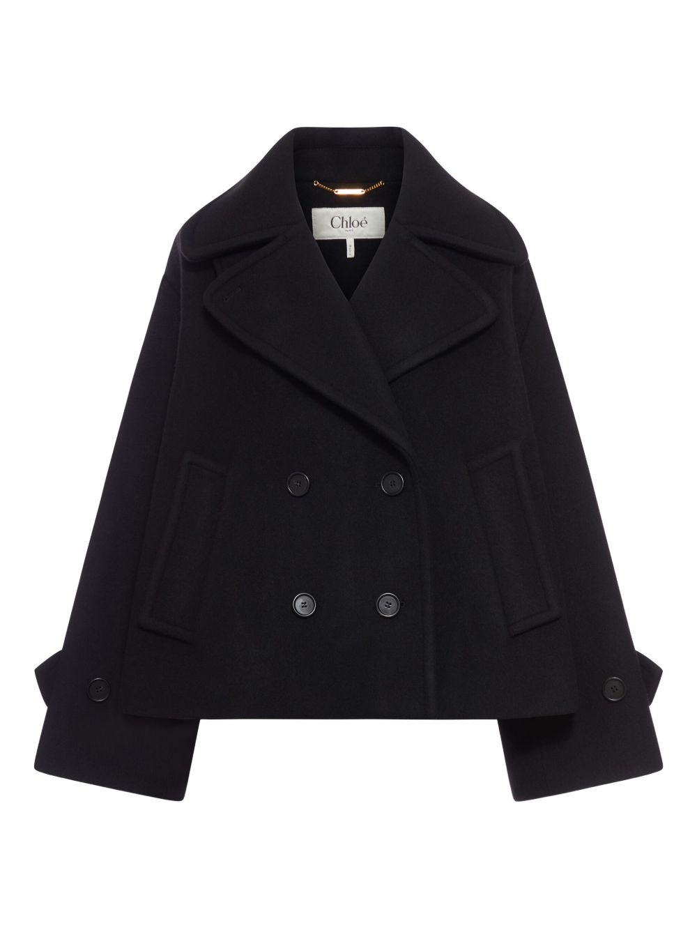 double-breasted jacket Highlights - Black - Wide lapels - Double-breasted button fastening - Oversized cuffs - Straight hem Imported Composition Wool 100% Washing instructions Read Manufacturer Guidelines