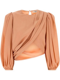 draped-detail blouse Highlights - Orange - Round neck - Draped detailing - Long puff sleeves Imported Composition Silk 100%