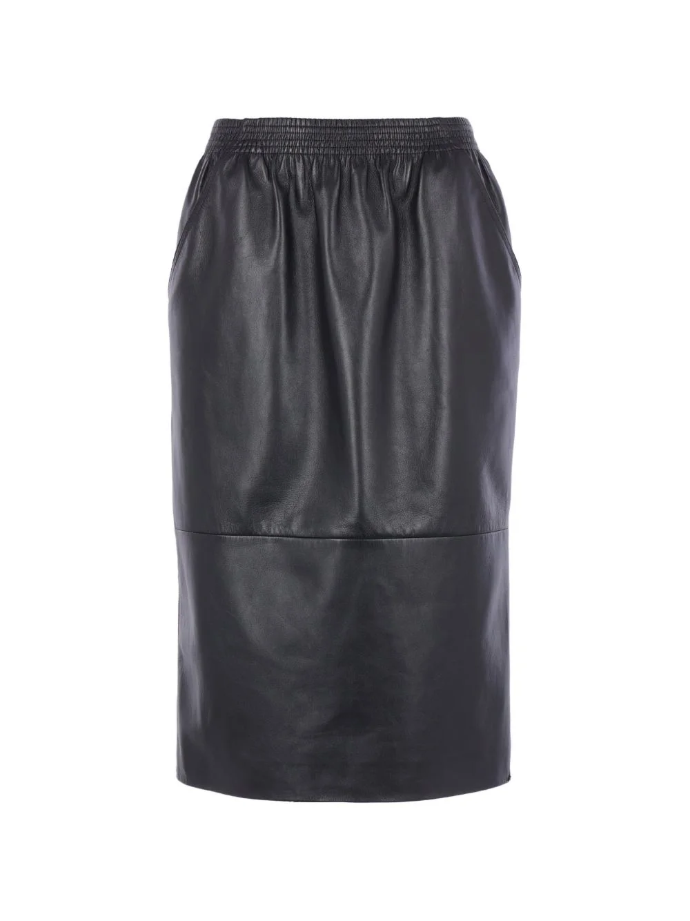 elasticated leather midi skirt Highlights - Black - Elasticated waistband - Seam detail - Pockets - Rear vent Imported Composition Calf Leather 100%