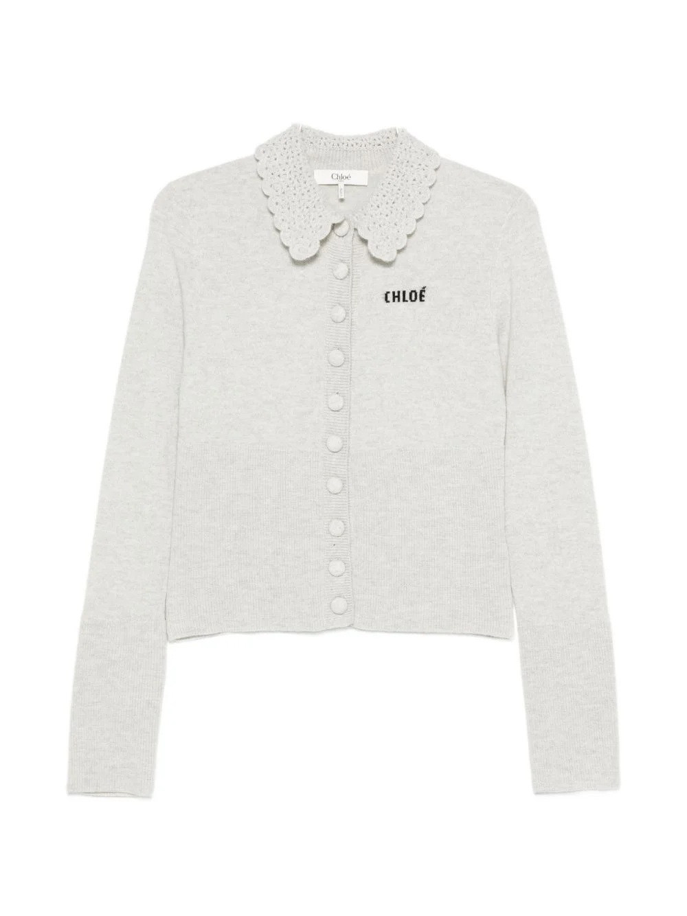embroidered-logo cardigan Highlights - Grey - Front button fastening - Scalloped collar - Long sleeves Imported Composition Wool 100% Washing instructions Read Manufacturer Guidelines