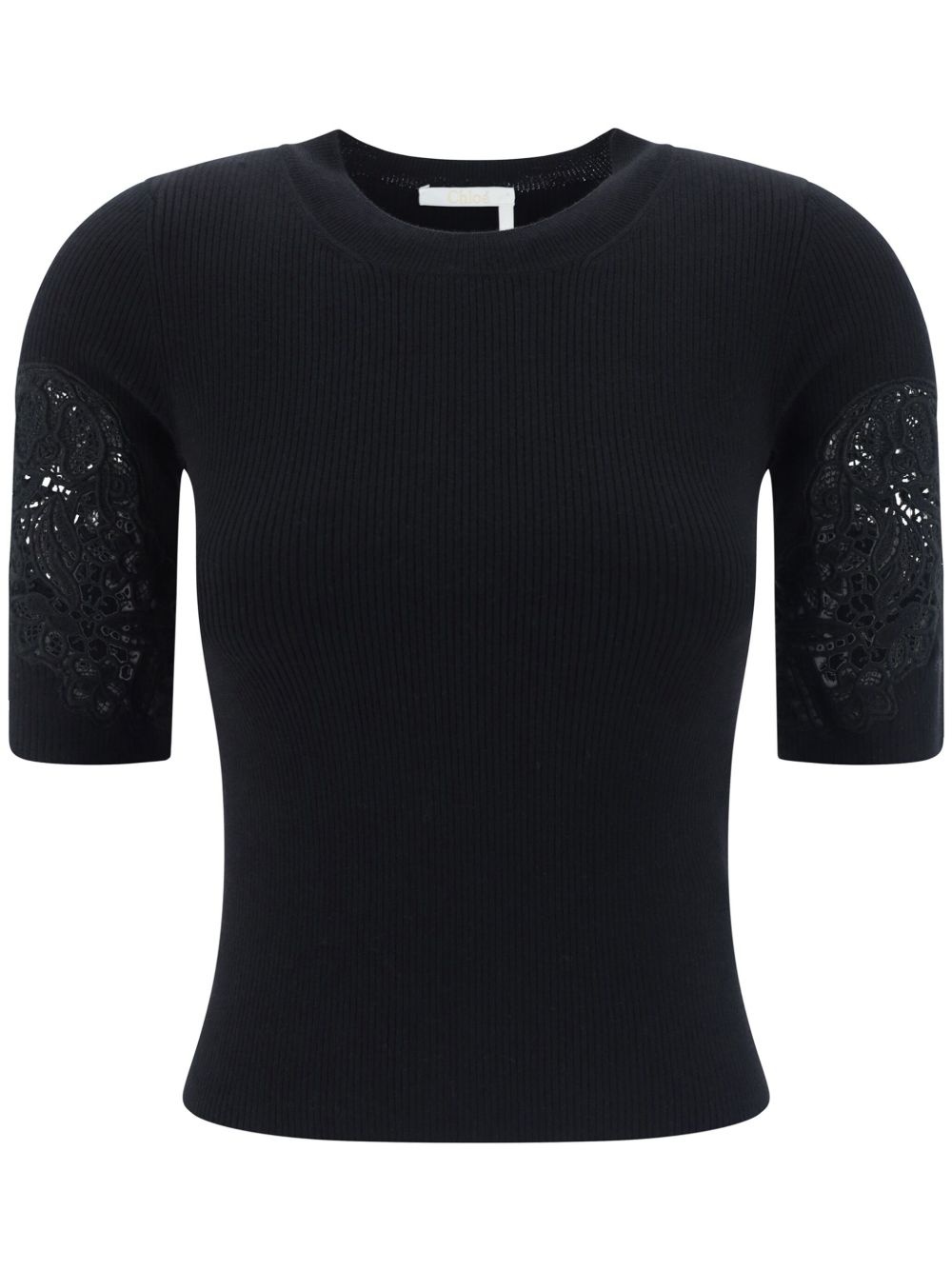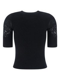 embroidered T-shirt Highlights - Black - Wool blend - Fine ribbed - Crew neck - Short sleeves - Embroidered motif - Straight hem Imported Composition Wool 89%, Fabric 11% SIZE & FIT Measurement BUST 25.19 in(64 cm) LENGTH 11.02 in(28 cm) SLEEVE LENGTH 17.71 in(45 cm) FittingInformation Designed for a slim fit that sits just away from the body offering a close yet comfortable fit Made with a midweight knit, this piece offers some stretch