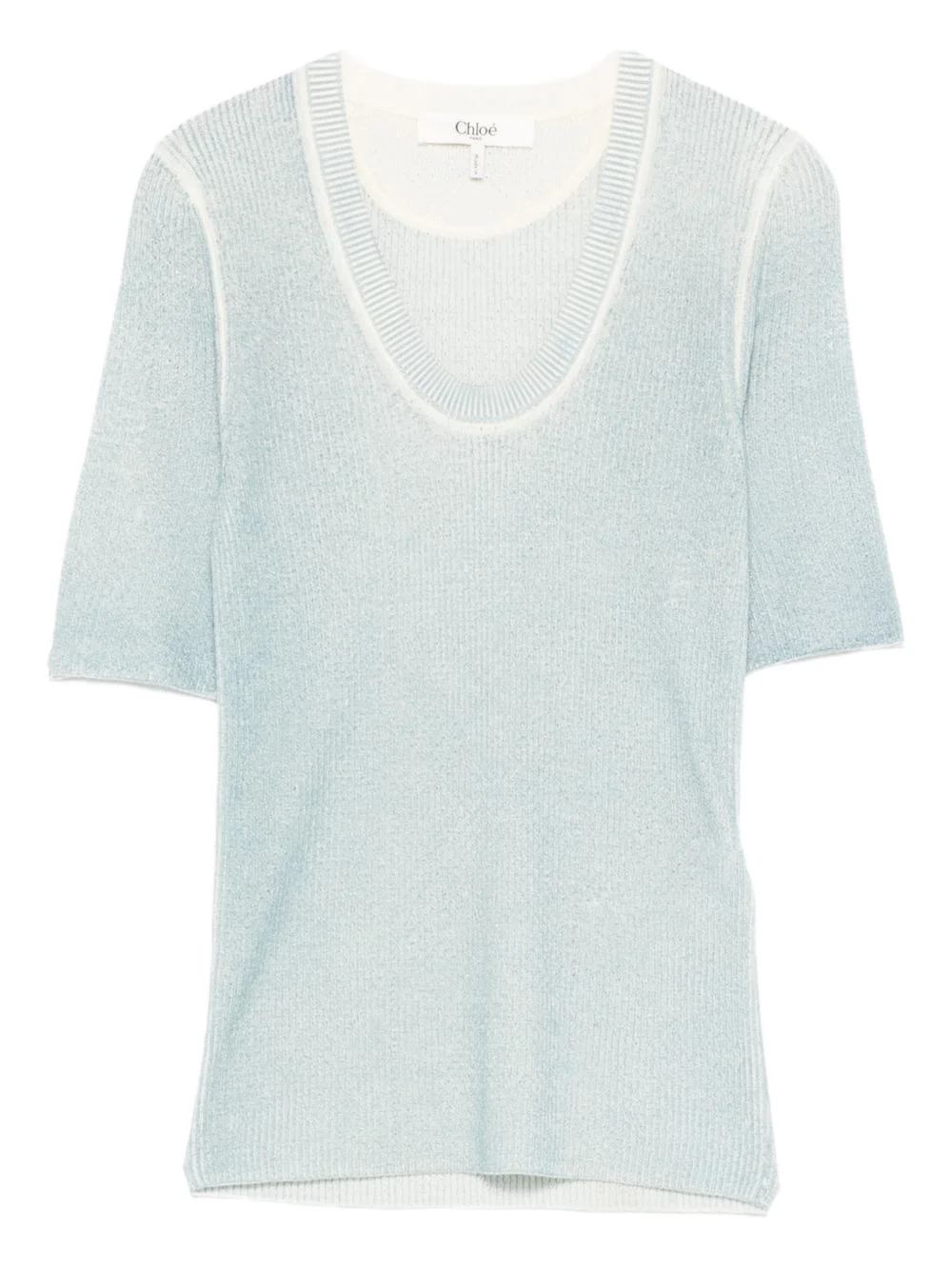 fine-knit T-shirt Highlights - Light blue - Scoop neck - Short sleeves Imported Composition Silk 100%, Merino 66%, Viscose 34% Washing instructions Dry Clean Only